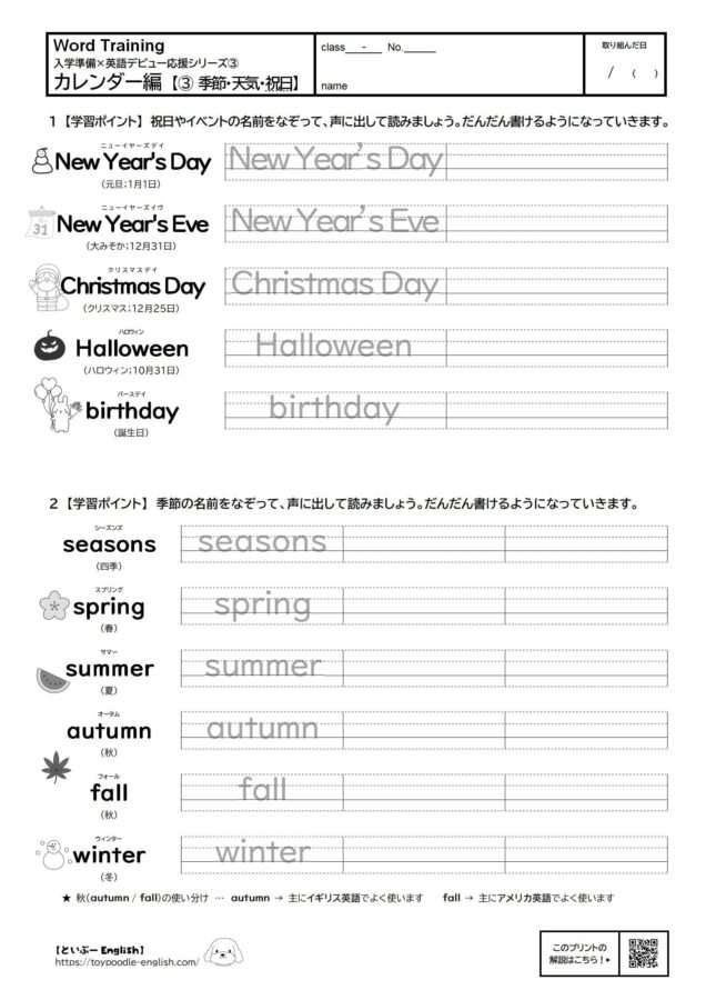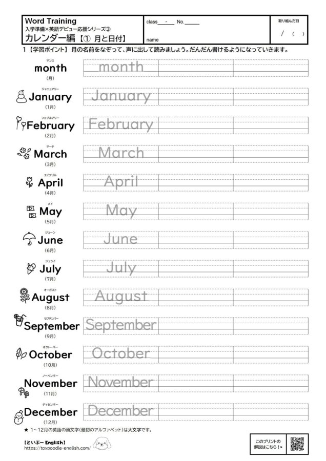 入学準備×英語デビュー応援シリーズ③ カレンダー編 📆