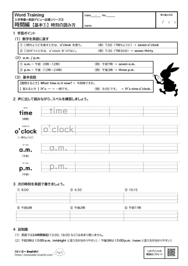 入学準備×英語デビュー応援シリーズ② 時間編 ⏰