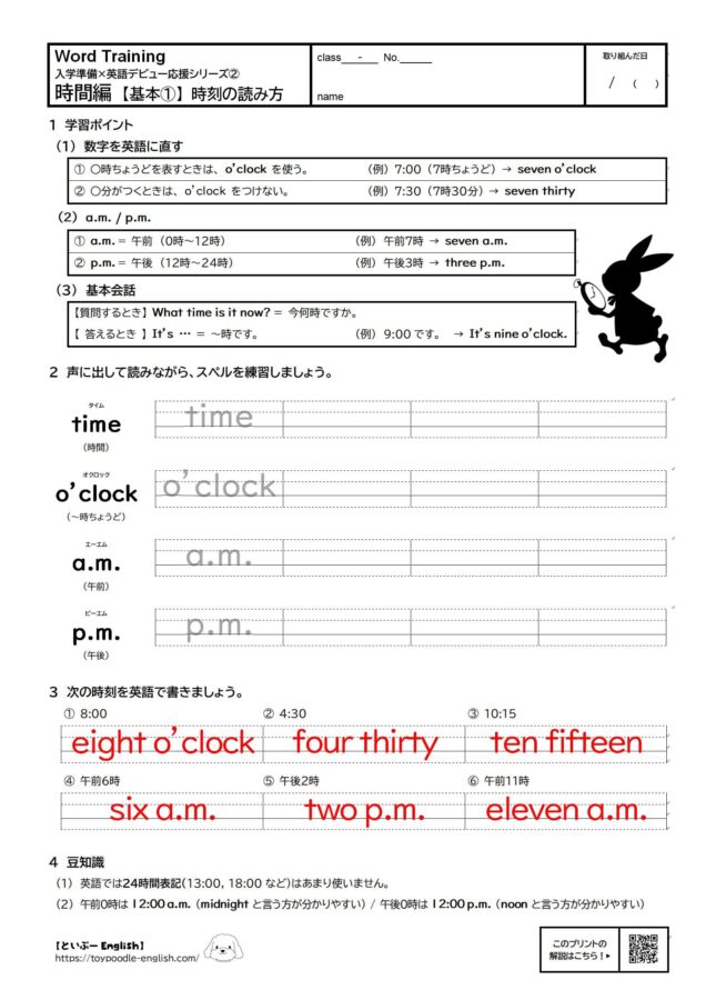 🎁 プリントをダウンロードして練習すれば、「時間の英語」はバッチリ!