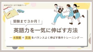 スタディラボ 🎯受験まで3か月!英語力を一気に伸ばす方法 ― 4技能+文法をバランスよく伸ばす集中トレーニング ― はじめに受験シーズンが近づくと、「あと少し英語力を伸ばしたい」と感じる人も多いのではないでしょうか。でも安心してください。今からでも、毎日のちょっとした工夫で英語力は確実に伸びます。ひらりんこの記事では、残り3か月で英語力を底上げするための... 2025.10.19 スタディラボ英語コラム