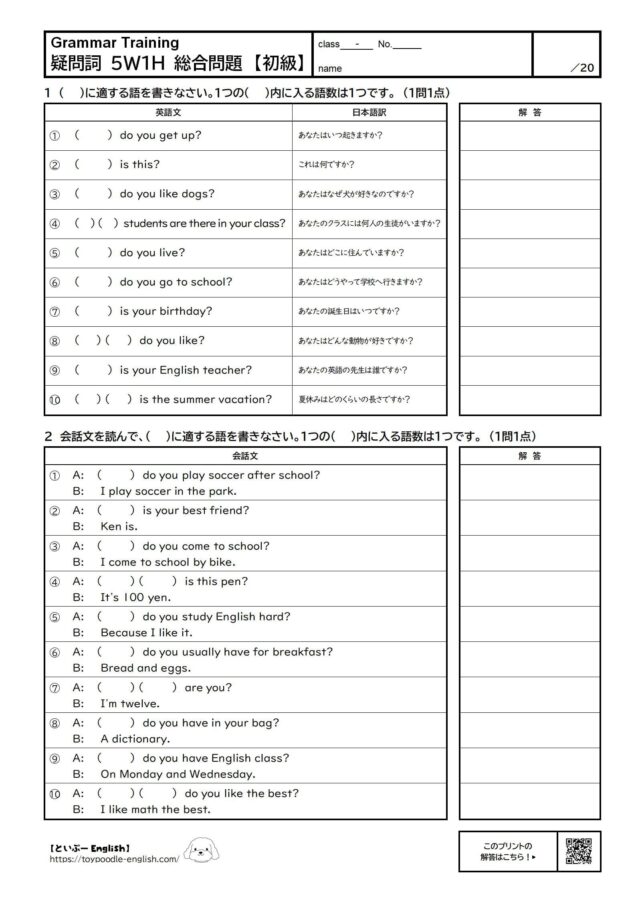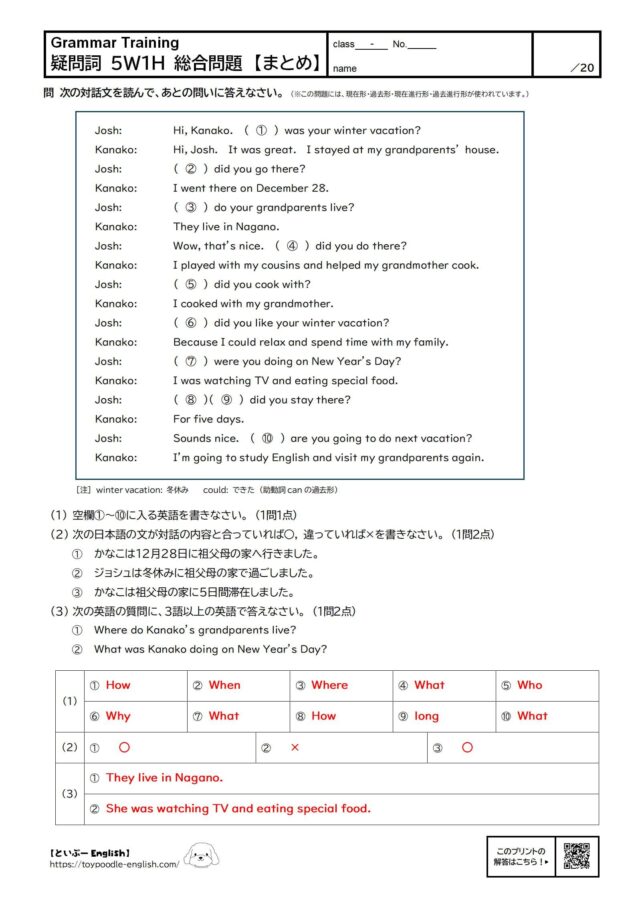 - ⑩ ( )( ) is the summer vacation? 【訳】夏休みはどのくらいの長さですか?