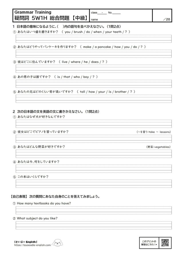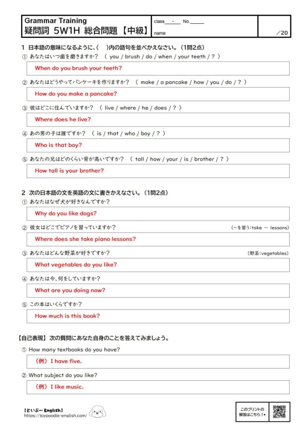 - ④ ( )( ) students are there in your class? 【訳】あなたのクラスには何人の生徒がいますか?