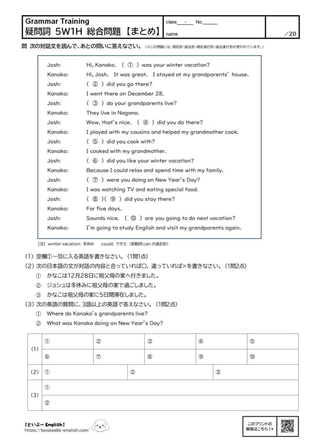 【訳】あなたの冬休みはどうでしたか。👉 冬休みのようす・感想を聞いているので How を使います。