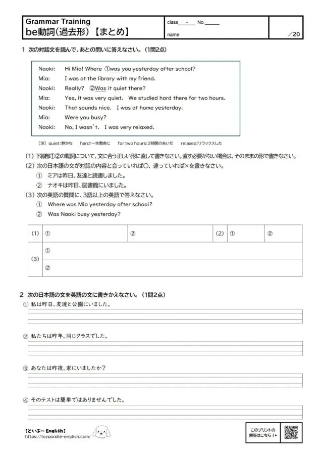 「中1英語|be動詞(過去形)」