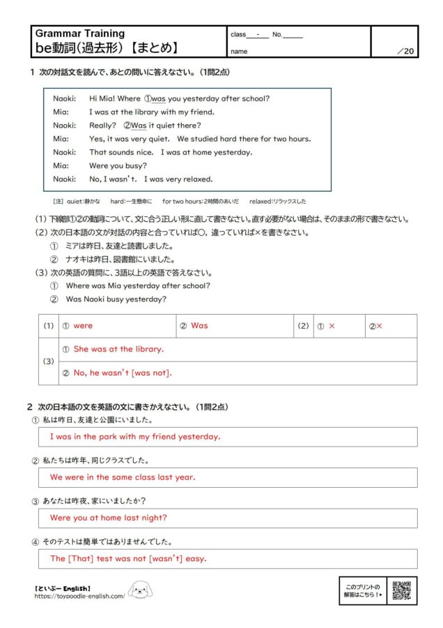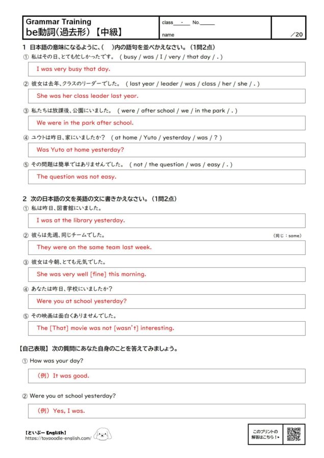 - ⑥ ― Yes, I ( am ・ was ・ were ). 【訳】(⑤に対して)はい、疲れていました。