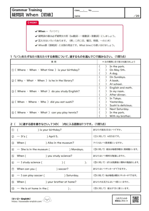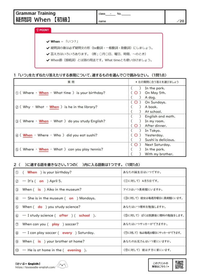 疑問詞 When【まとめ】