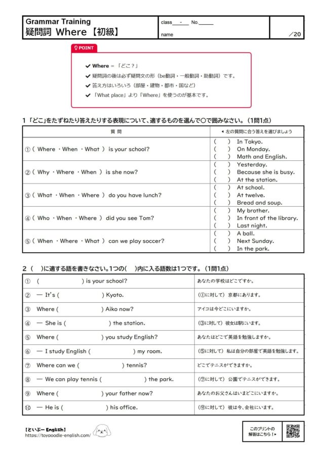 ① ( ) is your school? 【訳】あなたの学校はどこですか。