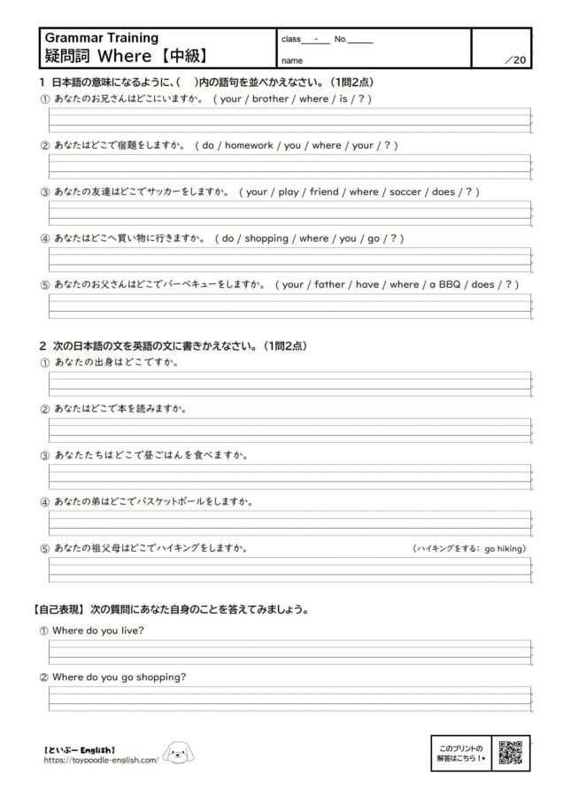 - ② あなたはどこで宿題をしますか。 ( do / homework / you / where / your / ? )