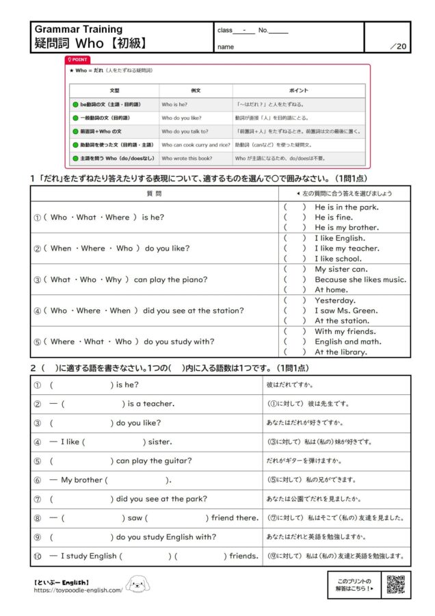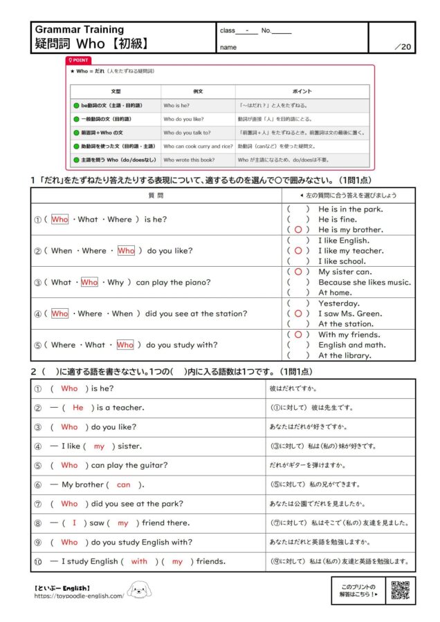 疑問詞 Who【まとめ】