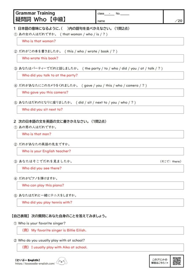 疑問詞 Who【中級】