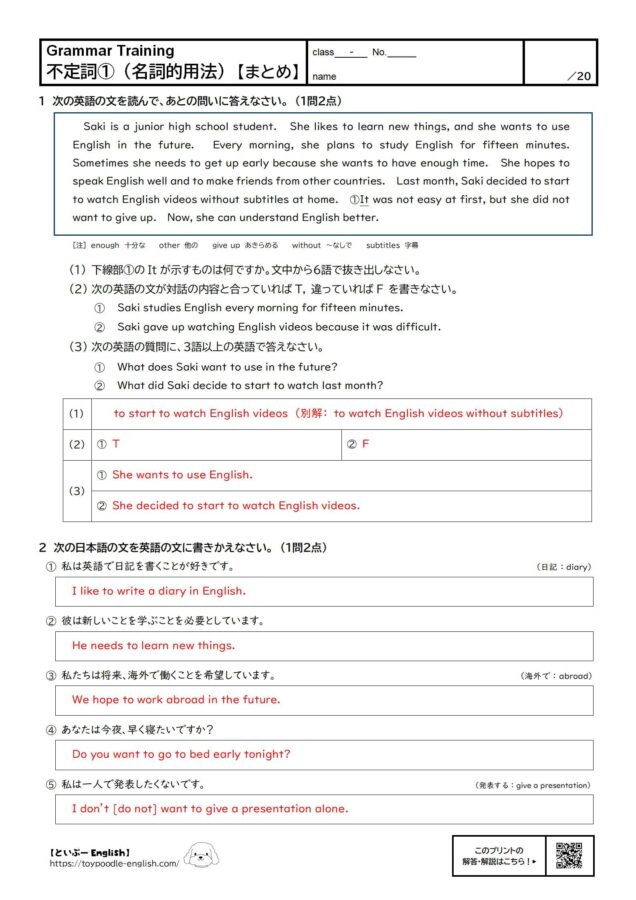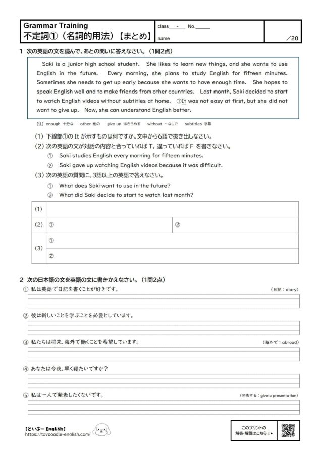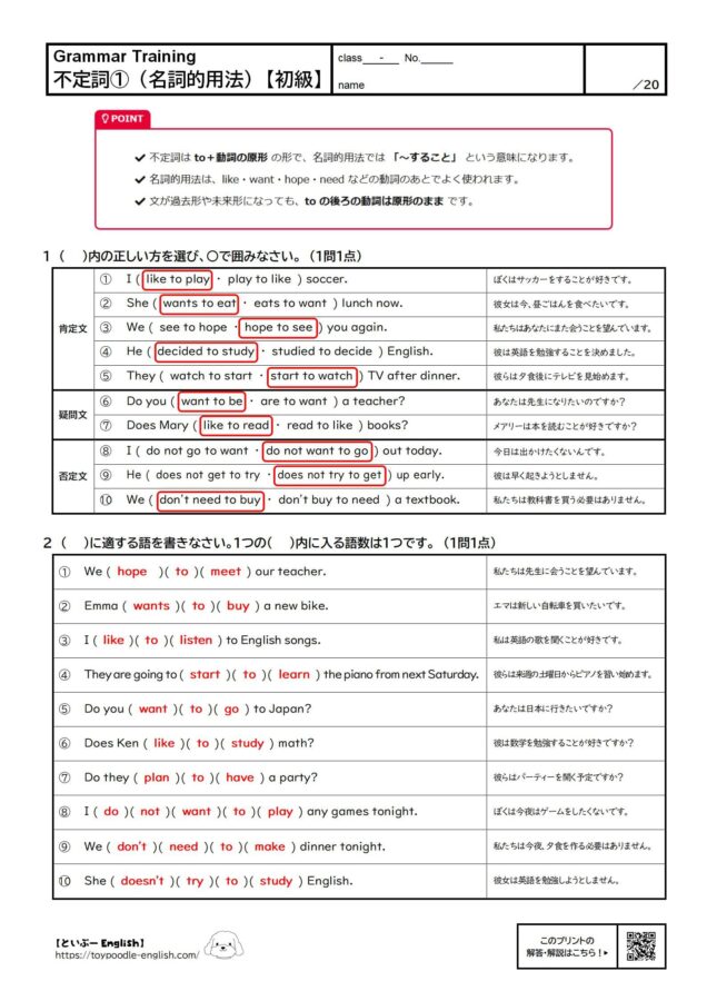 → 生徒にもわかりやすいように、文法のポイントをやさしく説明しています。