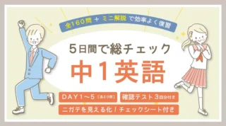 スタディラボ 中1英語を5日間で総復習!無料おためし版も配布中 解 説おためしプリント※本教材は、中学1年生の学習範囲を一通り終えたあと、定期テスト・入試を見すえた総復習・習熟度確認用として作成しています。中1英語、どこが苦手か分かっていますか?保護者さんうちの子、英語が苦手になってきたけど、どこが分か... 2026.03.08 スタディラボテスト検定対策中1英語学年別教材
